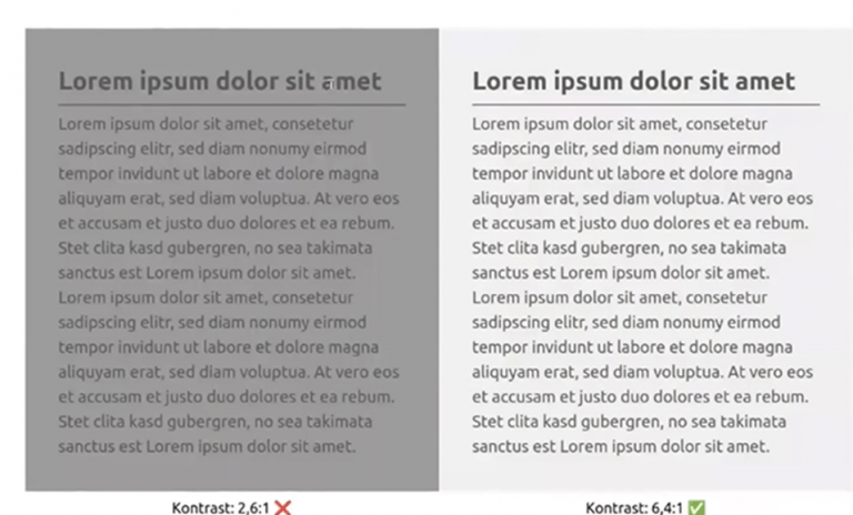 Ausreichende Hell-Dunkel-Kontraste auf einer Internetseite tragen maßgeblich zur Barrierefreiheit und besseren Lesbarkeit bei. Sie ermöglichen es insbesondere Menschen mit Sehbeeinträchtigungen, Inhalte klar zu erfassen, und verringern die visuelle Belastung für alle NutzerInnen. Gleichzeitig verbessern gute Kontraste auch die Darstellung auf unterschiedlichen Endgeräten und bei ungünstigen Lichtverhältnissen. Ein durchdachtes Farbkonzept erhöht somit nicht nur die Zugänglichkeit, sondern auch die allgemeine Nutzerfreundlichkeit einer Webseite.