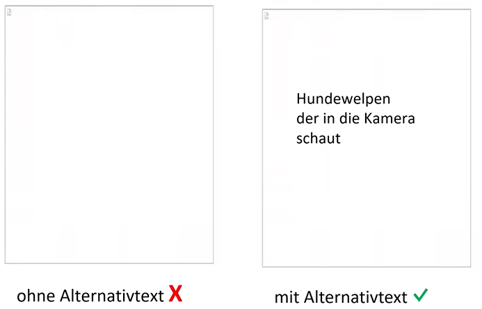 Die Verwendung von Alternativtexten für alle eingebundenen Bilder verbessert die allgemeine Zugänglichkeit der Inhalte. Diese Texte sind nicht nur für Menschen mit Einschränkungen hilfreich, sondern verbessern auch die Nutzererfahrung bei technischen Problemen – etwa bei einer instabilen Internetverbindung, durch die Bilder nicht geladen werden können. In solchen Fällen ermöglicht der Alternativtext dennoch ein grundlegendes Verständnis des Inhalts.