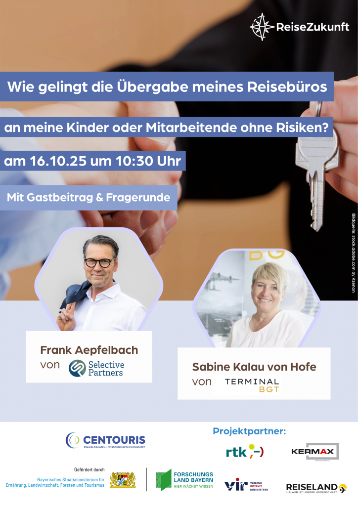 ReiseZukunft Impulsveranstaltung: „Unternehmensnachfolge im Reisebüro: Planung, Ablauf und erfolgreiche Übergabe„